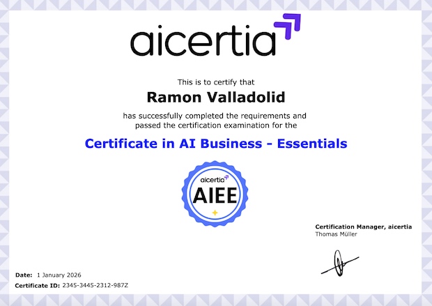 Al completar esta certificación, recibirás un certificado oficial de Aicertia, avalado por expertos en el sector de la IA y reconocido por empresas y profesionales del ámbito tecnológico.